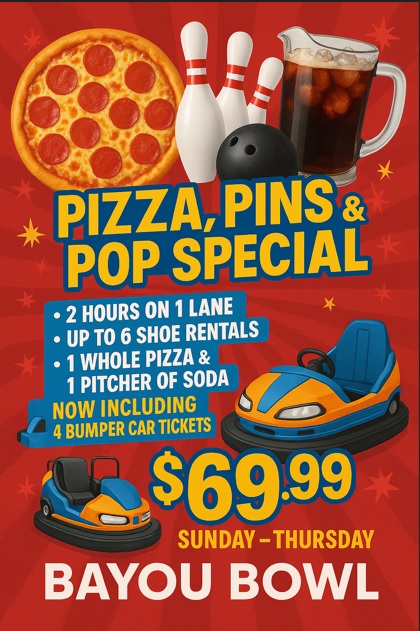 - Pizza and Drink – $4.26 extra PER CHILD
